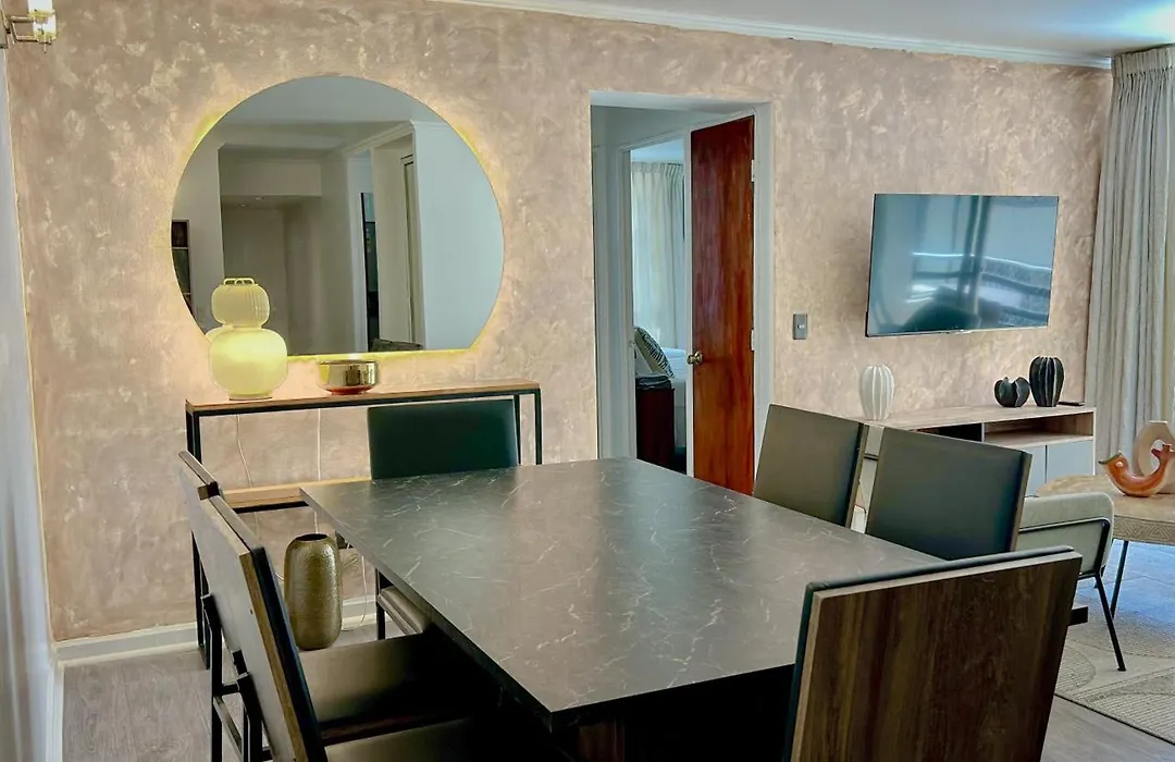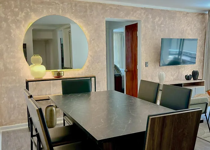 The central Plaza de Armas can be reached by car in a few minutes, while Sala de Arte Las Condes is right by this apartment. It takes 30 minutes to get to the centre of Santiago on foot. The 80 m² Acogedor Departamento En Barrio El Golf Con Aire Acondicionadocercano A Costanera Center Y Mut apartment enjoys proximity to the urban park "Plaza Peru", which is a 9-minute walk away.